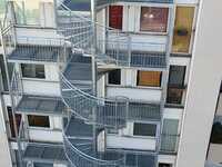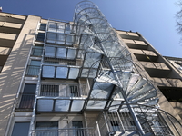 Fluchtspindeltreppe mit Fluchtbalkone über 6 Geschosse an einer Wohnanlage in der Rubensstrasse in Berlin