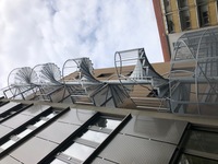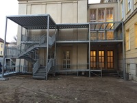 3 viergeschossige Fluchtspindeltreppen in der Rossmäßler-/Rietzstraße in Dresden im Mai 2018 fertig errichtet.