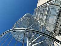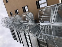 Die 16,7 Meter hohe Fluchtspindeltreppe ohne Austritts- oder